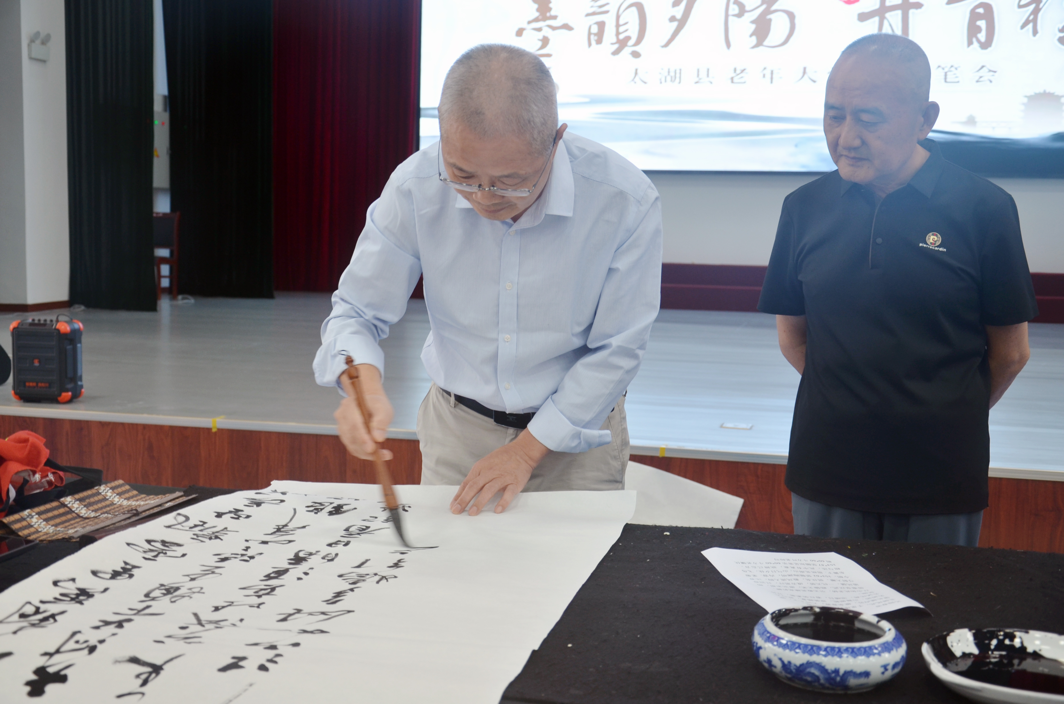 10月13日,太湖县老年大学举办墨韵夕阳,丹青雅集书画笔会,邀请14名书画家参加活动。 书画家们现场创作书画作品近40幅,作品墨色醇厚,丹青妙笔,情感真挚。 此次活动是一次生动的文化艺术交流,丰富了校园文化,体现了银龄人“老有所学,老有所乐,老有所为”。(蔡刘根)