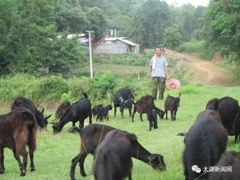 石善春的家在弥檀路南侧山冲,离皖鄂交界不过1公里。步行渐至,山坡密林深处,传来阵阵山羊“咩咩”叫声。拐过一个山脚,一眼就望见他家和他的养殖场。占地约400平方米,一色水泥空心砖搭建的棚呈半包围状。单调的灰色中,右侧不锈钢大门显得有些新潮。