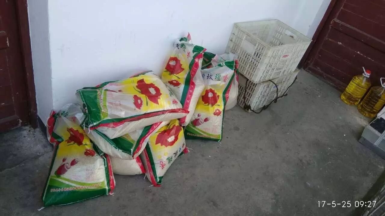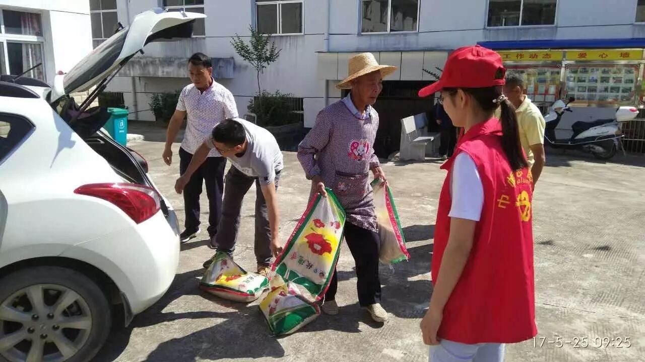 太湖县弥陀商会代表叶生祥、余传珂、赵进华为老人们送来大米、食用油