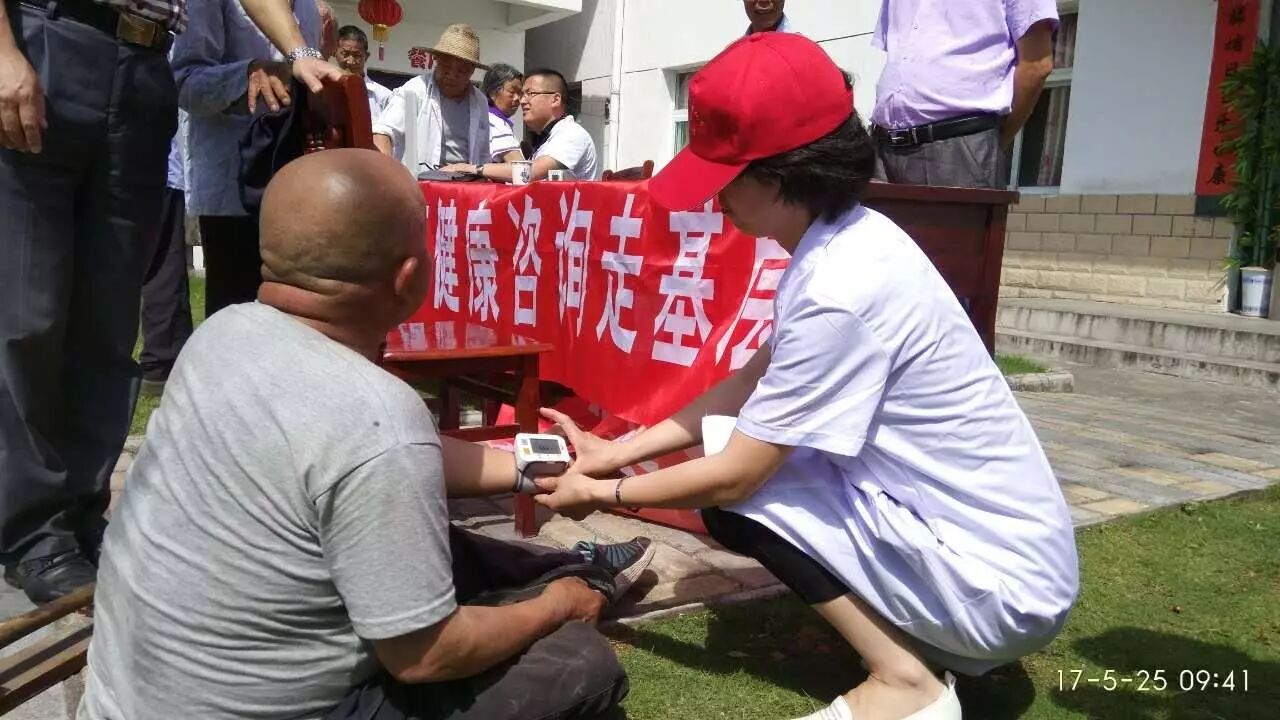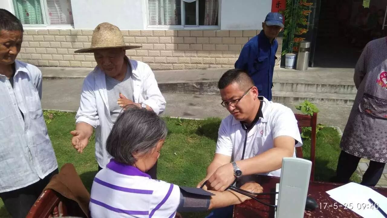 弥陀卫生院郭明净为老人测量血压