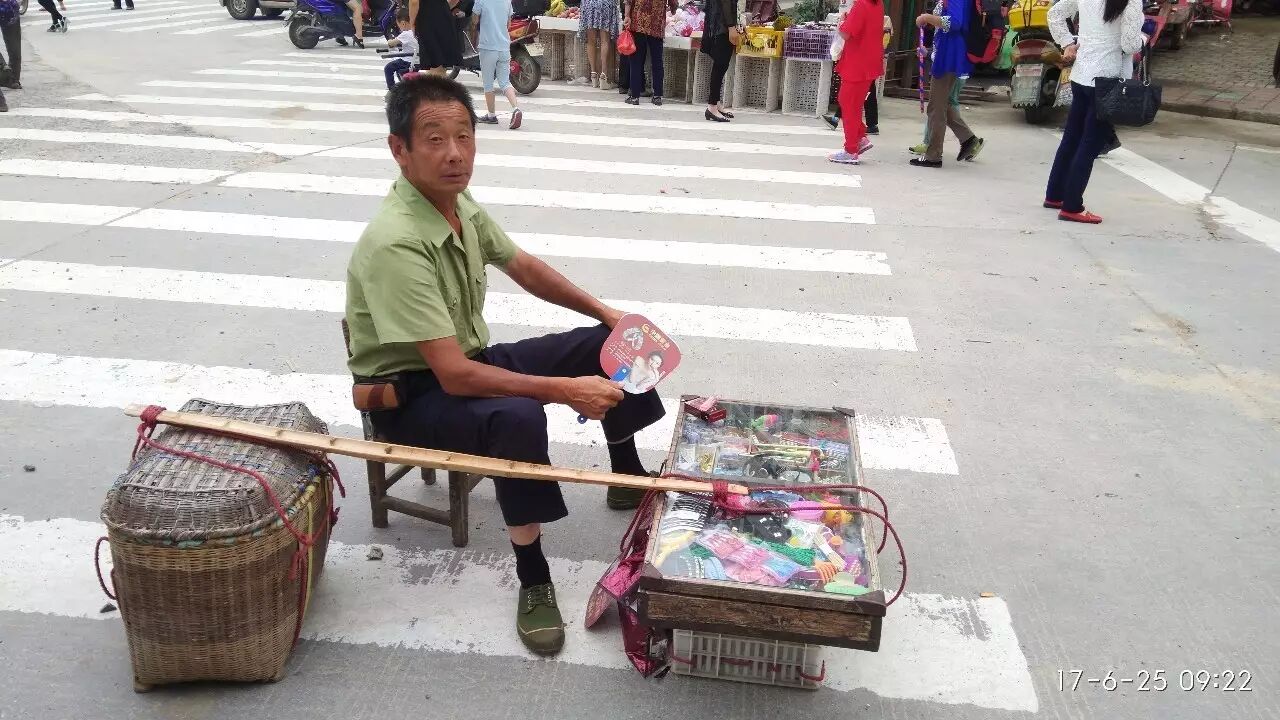 货郎大叔一个劲找我要拍照费,给他拍照片,他要五块钱