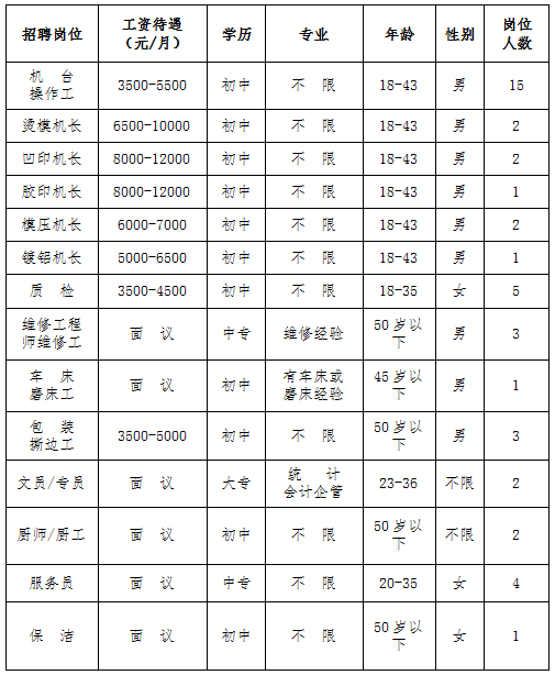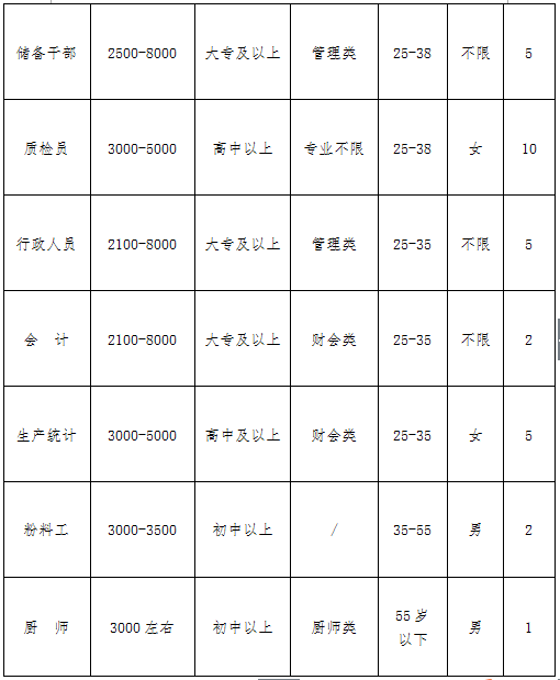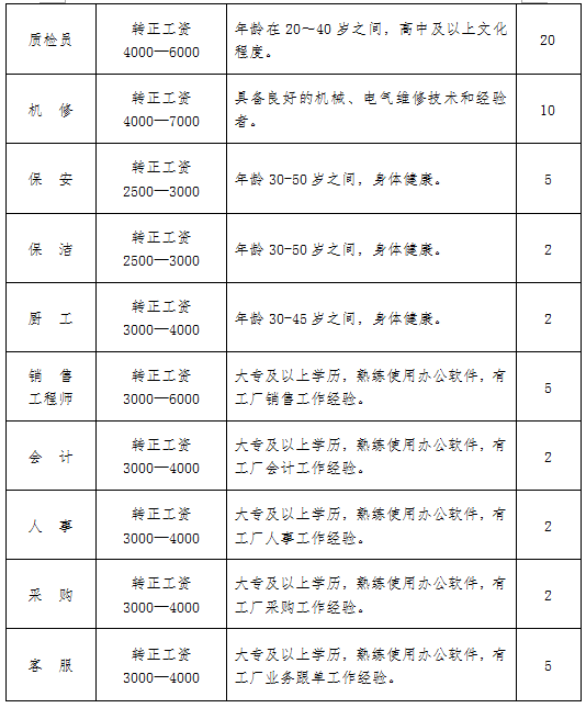 6、生产车间员工工资待遇由,计件工资、产量奖、全勤奖、工龄奖、年终奖等构成,实行多劳多酬原则,月综合工资3500元至8000元不等;行政人员月工资2100元至8000元不等。