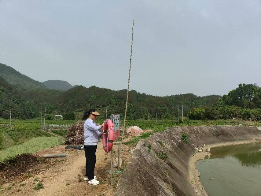 2025年5月8日,元畈村开展防溺水宣传活动,检查水域救援设施。