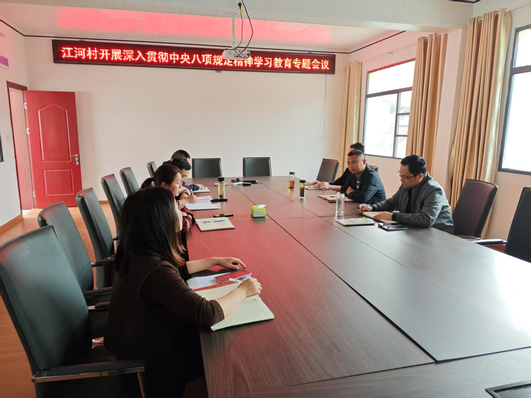 2025年4月1日,江河村驻村工作队同村两委集中开展深入贯彻中央八项规定精神学习教育专题会。