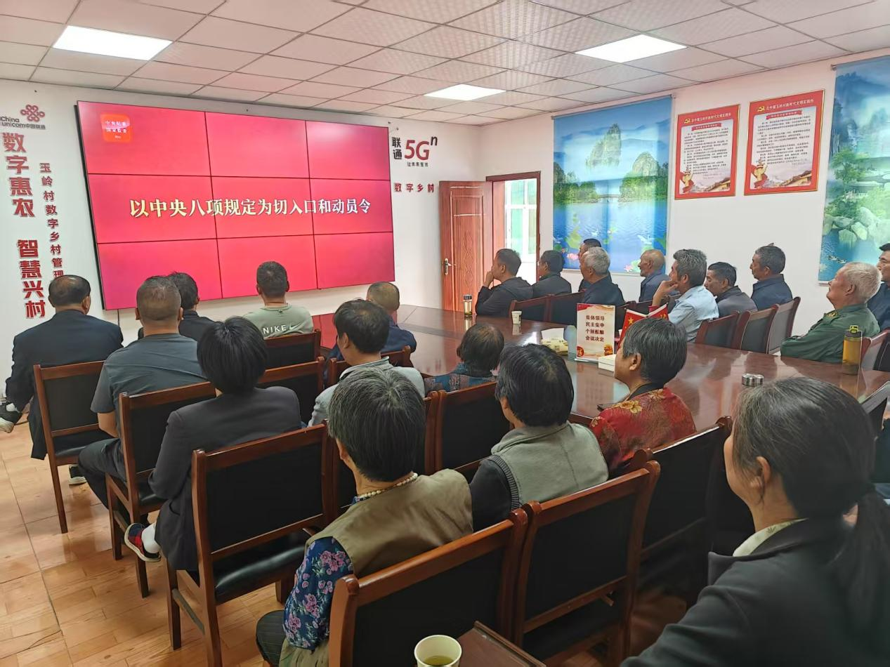 2025年5月28日,玉岭村组织党员集中观看学习视频《八项规定改变中国》,并观影《高山下的花环》。