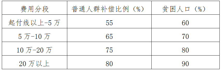 备注:在册未脱贫贫困人口在县域内乡镇卫生院及县级医疗机构、市级医疗机构、省级医疗机构住院,起付线分别为100元、300元、500元、1000元。