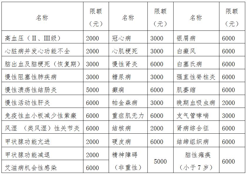 1.再生障碍性贫血;2.白血病;3.血友病;4.精神障碍(重性);5.恶性肿瘤放化疗;6.慢性肾衰竭(尿毒症期);7.器官移植抗排治疗;8.心脏瓣膜置换术后;9.血管支架植入术后;10.肝硬化(失代偿期);11.肝豆状核变性;12.系统性红斑狼疮;13.淋巴瘤骨髓瘤;14.骨髓增生异常综合征。