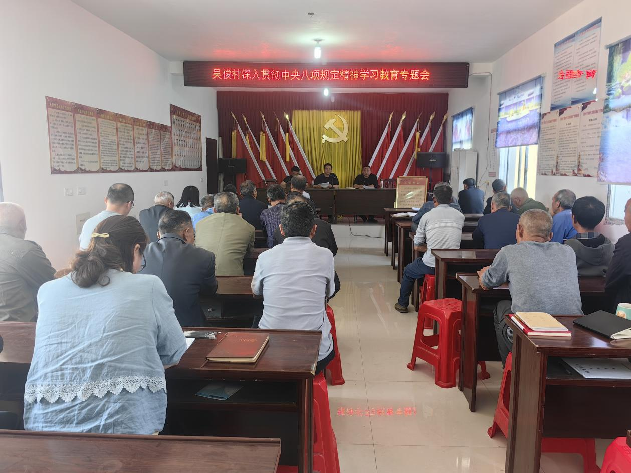 2025年5月12日,吴俊村组织全体党员,开展深入贯彻中央八项规定精神学习教育专题会议。