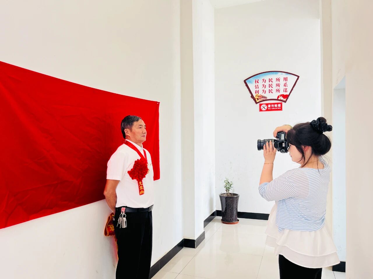 活动现场,老党员们精神矍铄,身着整洁的服装,庄重地佩戴上“光荣在党50年”纪念章。他们的脸上洋溢着自豪与喜悦,岁月在他们的面庞上留下了深深的印记,但眼中的光芒却依旧炽热,那是对党的忠诚与热爱从未改变的见证。志愿者们耐心地帮助老党员整理着装,调整姿势,用相机定格下这些珍贵而光荣的瞬间。镜头中,老党员们胸前的纪念章熠熠生辉,与他们坚定的眼神相互辉映,构成了一幅幅感人至深的画面。