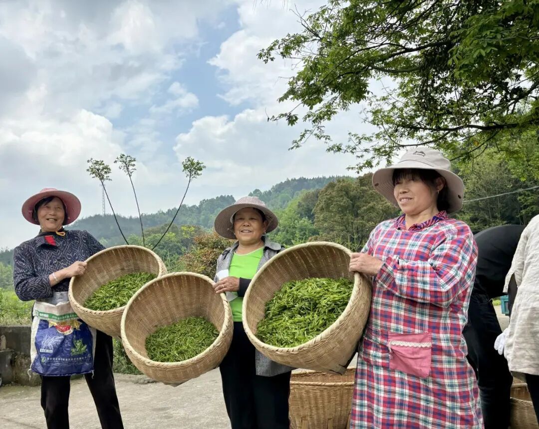 眼下正值采茶旺季,茶园犹如一幅幅绿色画卷,美不胜收。附近的村民们纷纷抓住这一增收良机到茶园务工,一双双勤劳的巧手在茶树枝头轻快飞舞,不一会儿,鲜嫩的茶芽就装满了背篓。村民王大妈一边熟练地采摘着茶叶,一边笑着说道:“采茶季在家门口干活,一天能挣百八十块,一个月下来也能挣不少,比外出打工方便多了,还能照顾家里老小,日子越来越有盼头啦!”除了采茶收入,村民们还能通过土地流转获得稳定租金,收入渠道日益多元化,生活水平得到显著提升。